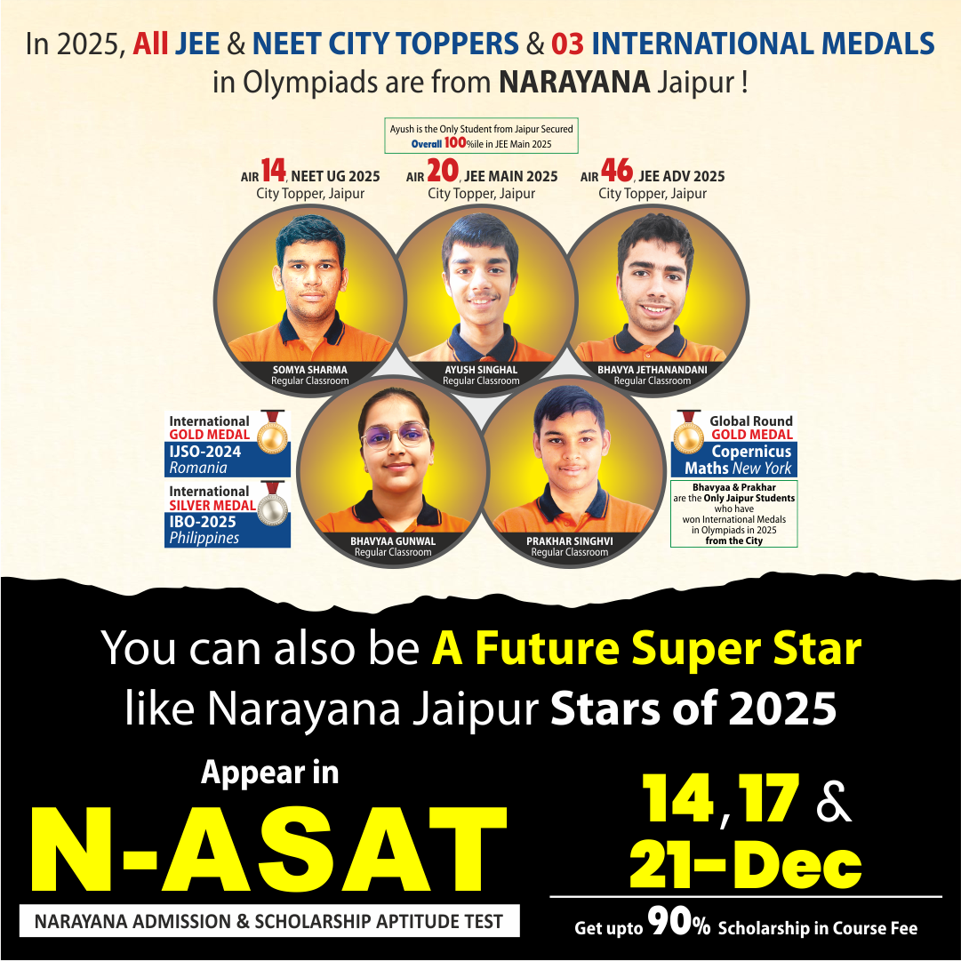 My name is somya Sharma and I joined narayana jaipur on 11th to prepare for NEET. Throughout this 2 year journey mentorship of ashish arora sir , guidance of my teachers and support of my parents has played an immense role in achieving my target.